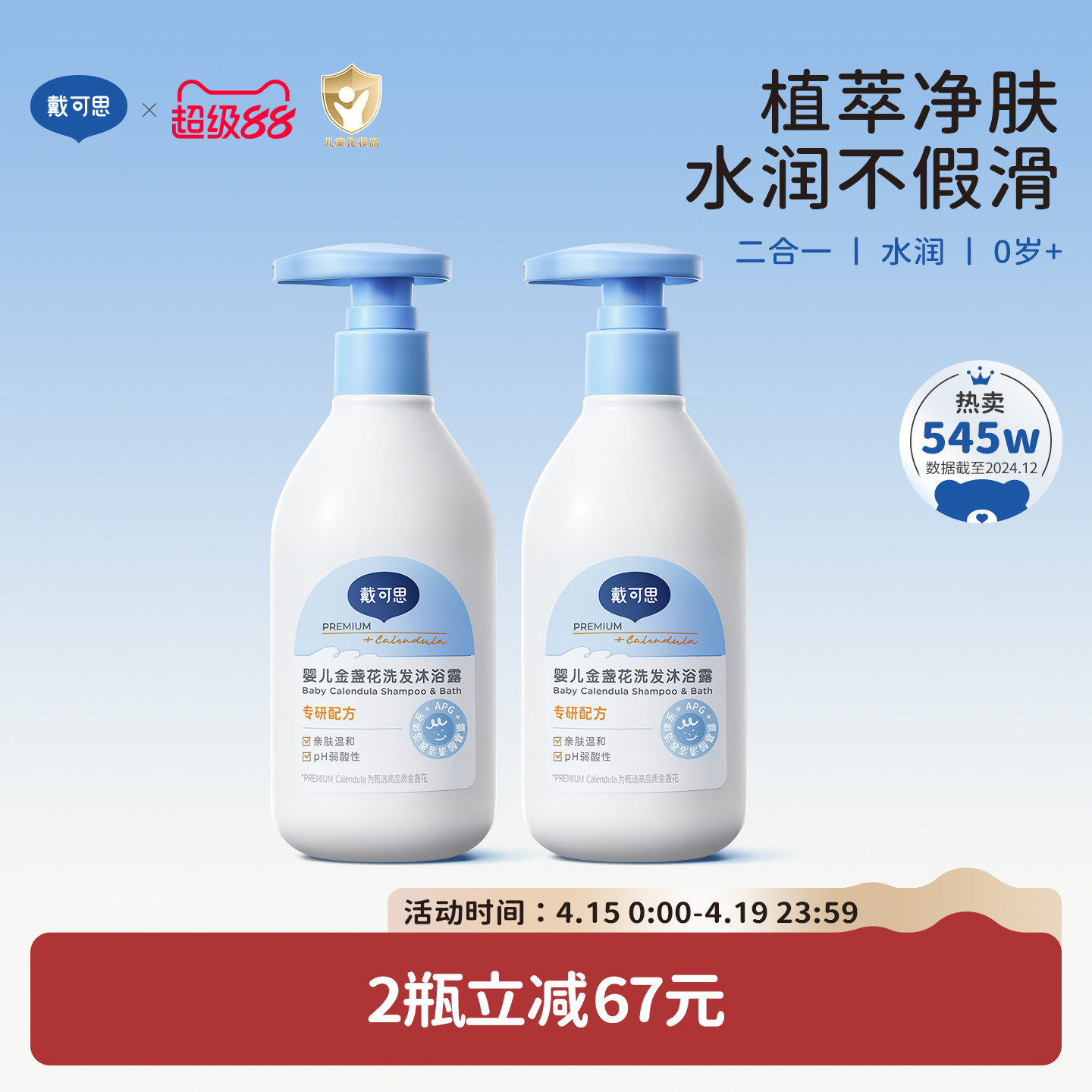 戴可思婴儿金盏花沐浴露洗发水二合一儿童宝宝沐浴乳婴童温和清洁