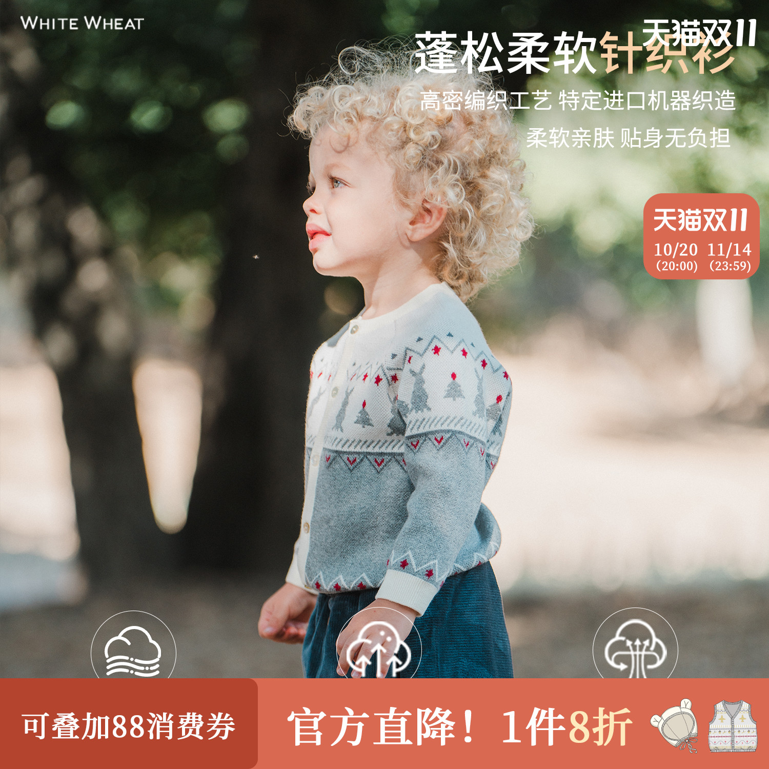 whitewheat男童2025冬季新款开衫毛衣女孩卡通上衣宝宝厚款针织衫