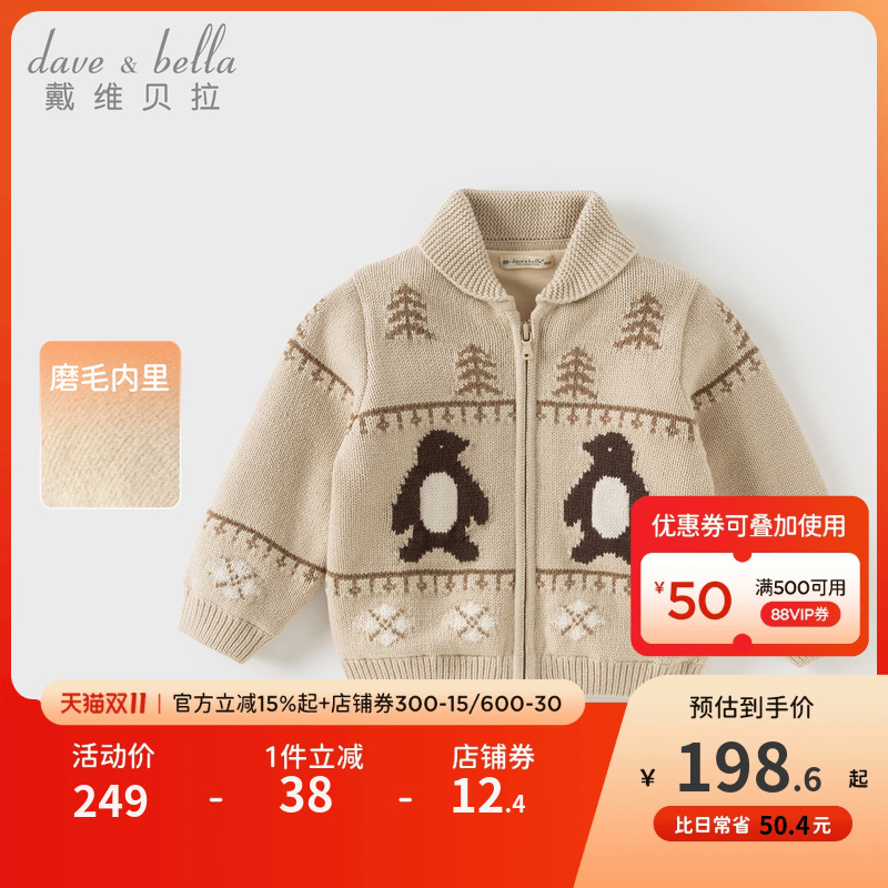 戴维贝拉男童毛衣儿童针织衫男宝宝拉链外套男孩衣服秋装上衣童装