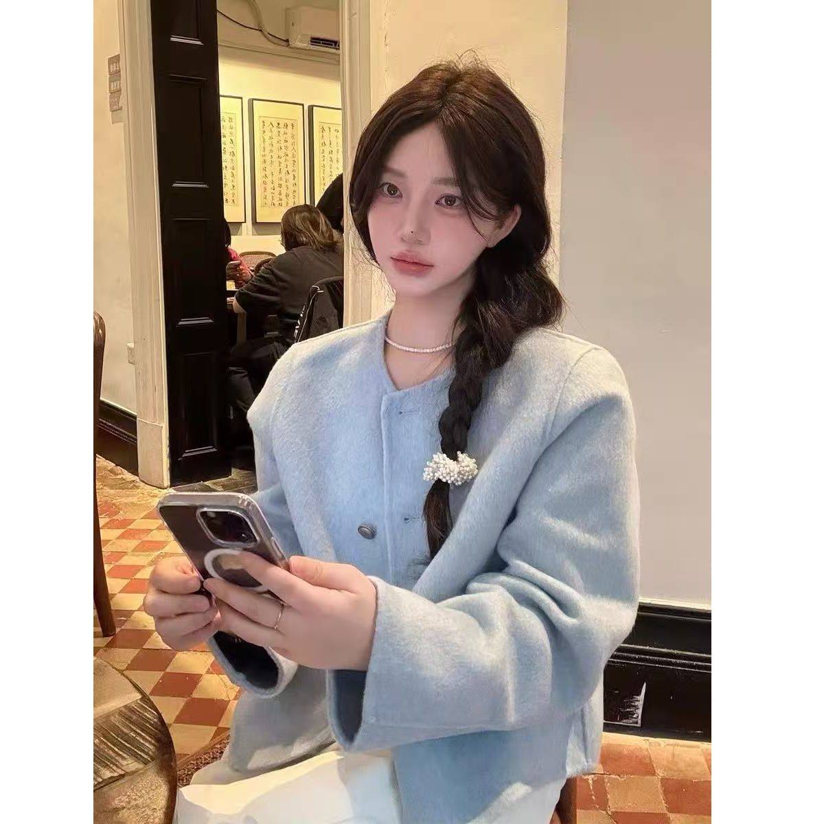 2025秋新款双面羊毛绒大衣女短款圆领韩系宽松高级感毛呢子外套