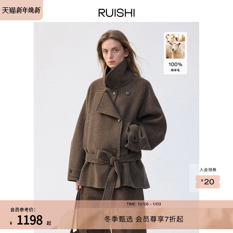 RUISHI芮时冬日来信 100美利奴立绒羊毛大衣廓形短款毛呢外套女冬