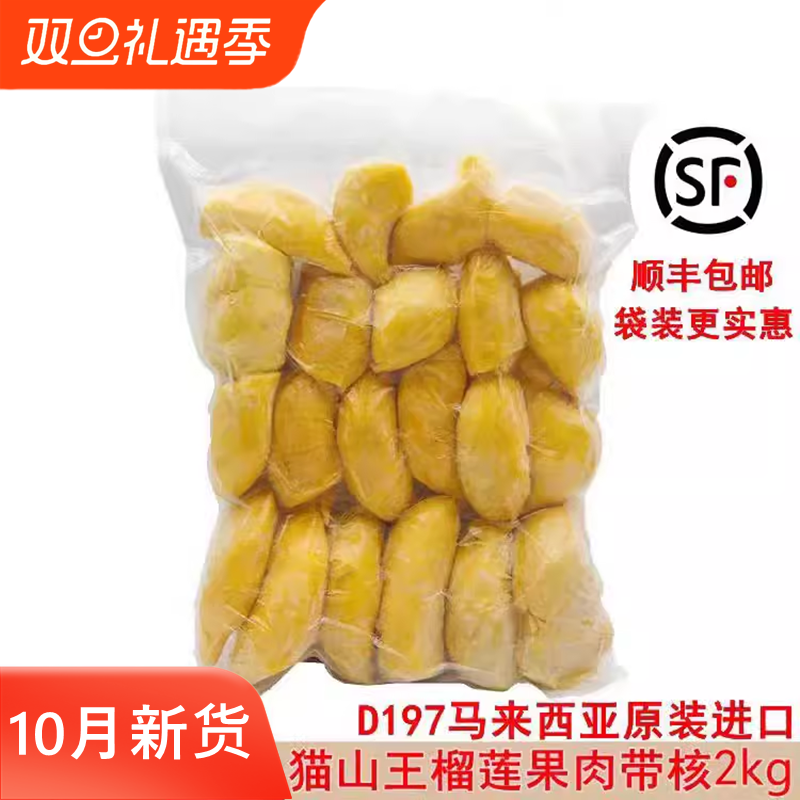 马来西亚猫山王榴莲d197原装进口冷冰冻新鲜水果果肉顺丰包邮2kg