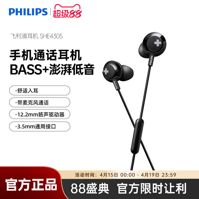 Philips/飞利浦 SHE4305双低音动圈入耳式耳机耳塞手机重低音耳麦