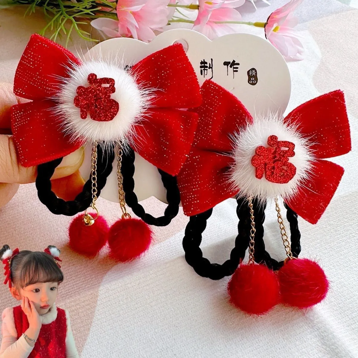 儿童新年汉服头饰古装小女孩发饰2024新款古风过年发夹小孩头花
