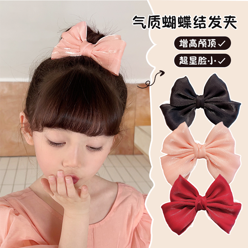 儿童珠光大蝴蝶结发夹洋气宝宝小孩公主头饰女童新款网红色发卡子