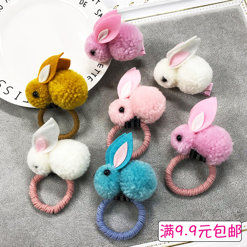 新款女童毛球兔子发饰发圈儿童可爱橡皮筋宝宝发夹小孩扎头发头饰