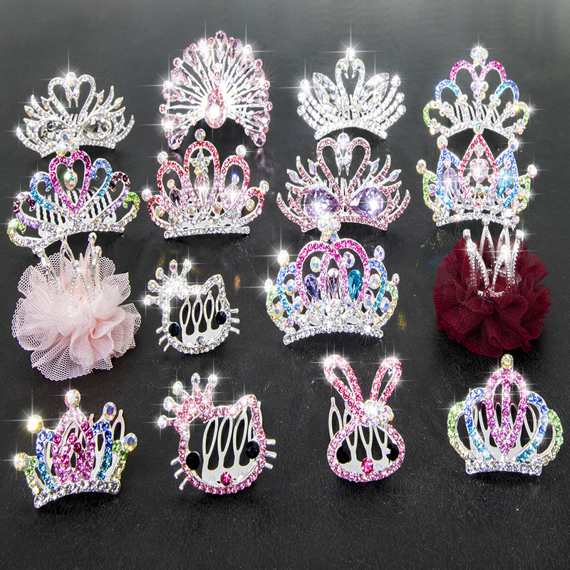 儿童皇冠头饰公主女童水晶发夹王冠小孩发卡宝宝生日演出发箍发饰