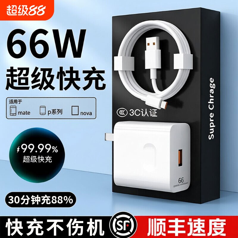 快充66W超级适用华为充电器头Mate60pro/P50荣耀40原装Nova8/7插头10正品9手机6A数据线70一套装氮化镓闪充