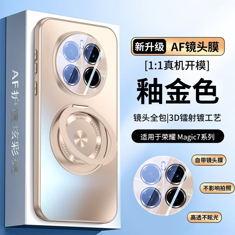 适用荣耀magic7pro手机壳Honor微磨砂超薄防摔镜头玻璃全包magic6保护套磁吸充电旋转支架魔术7手机外壳男女