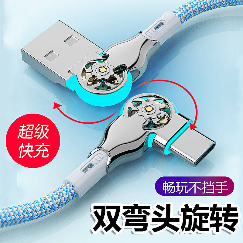 双旋转数据线6A超级快充适用华为苹果14弯头充电线Nova7手游不挡手mate60pro荣耀50双头可旋转闪充线