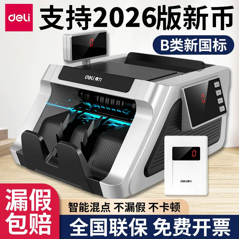 得力B类2026新版人民币验钞机商用收银小型便携式超市家用新三屏点钞机智能办公数钞机通用新款语音提示播报