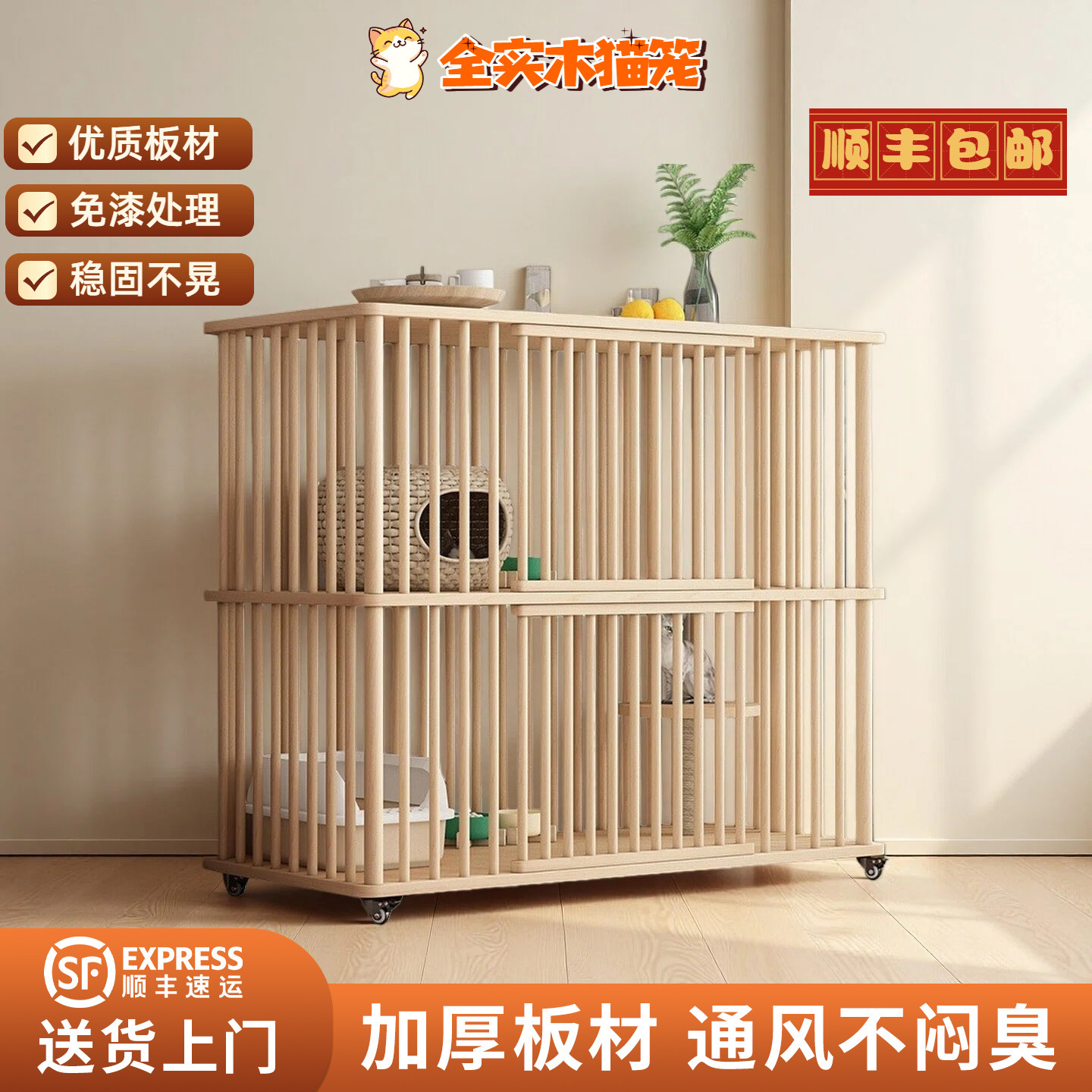 实木猫笼子家用猫别墅超大空间室内可移动三层猫柜猫舍猫房狗笼子