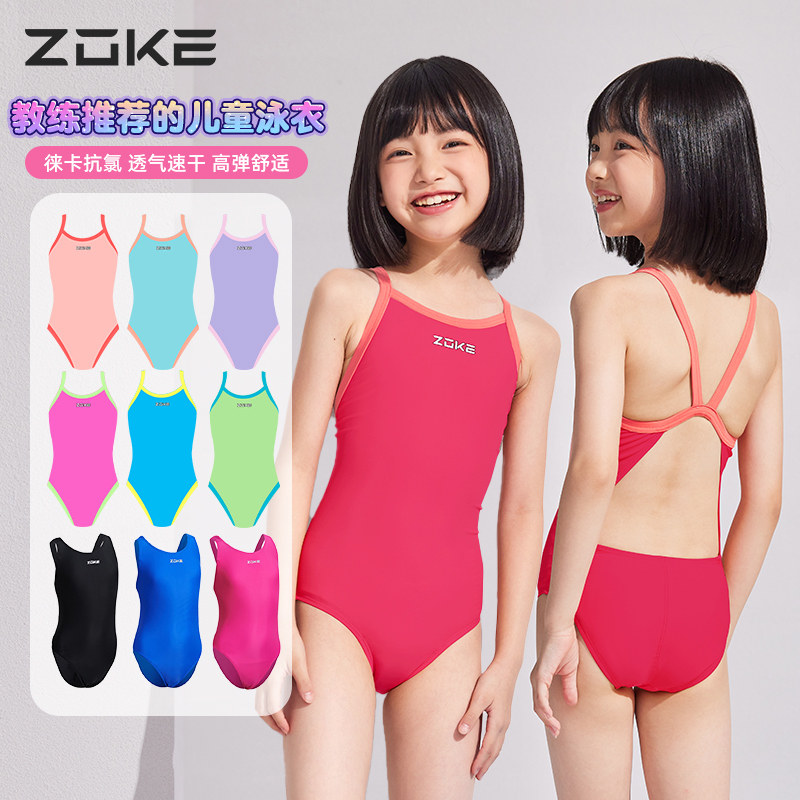 洲克女童泳衣竞速运动儿童zoke专业训练女孩游泳衣中大童宝宝泳装