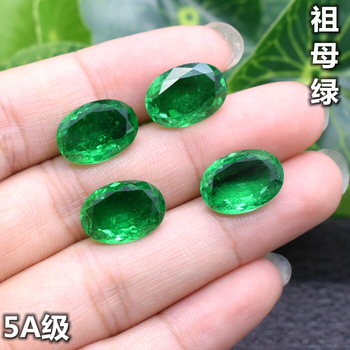 5A级祖母绿裸石平底蛋面圆形绿色小宝石diy素面弧面光面饰品钻石