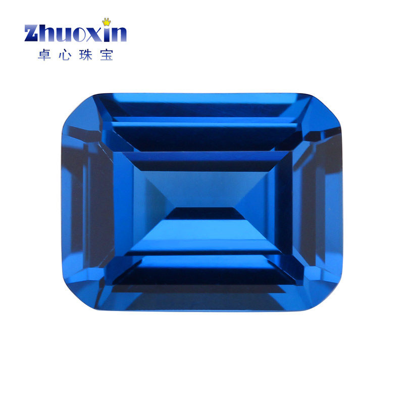 祖母绿切工蓝色尖晶石裸石 长方形倒角车平119#合成尖晶宝石主石