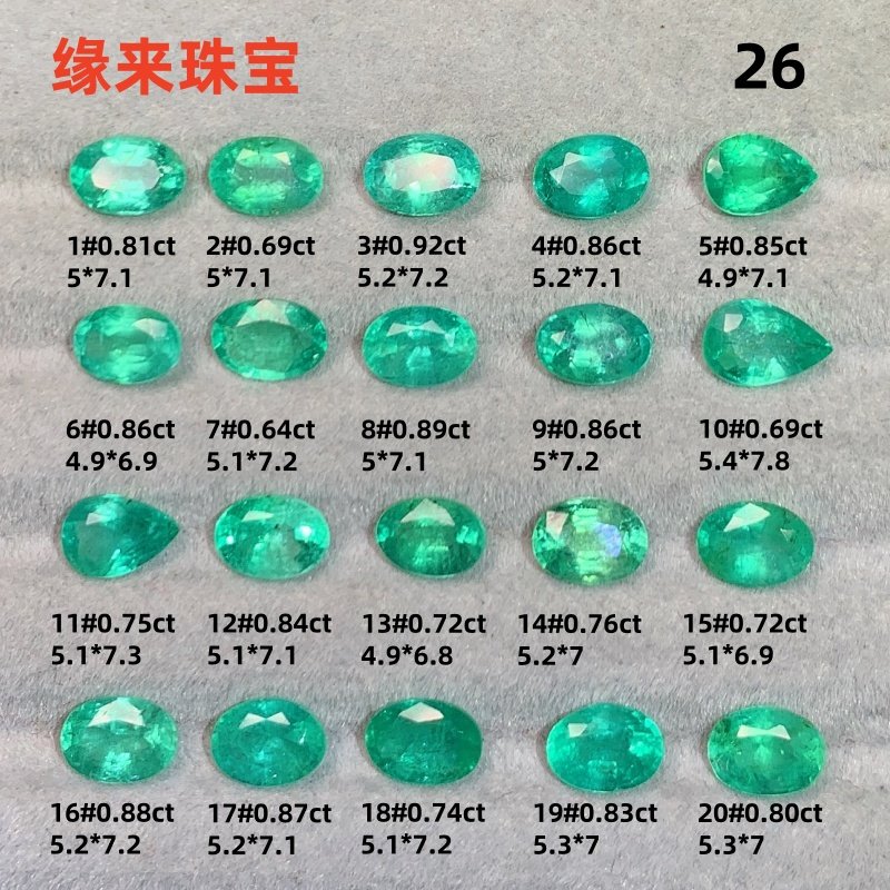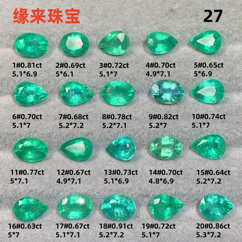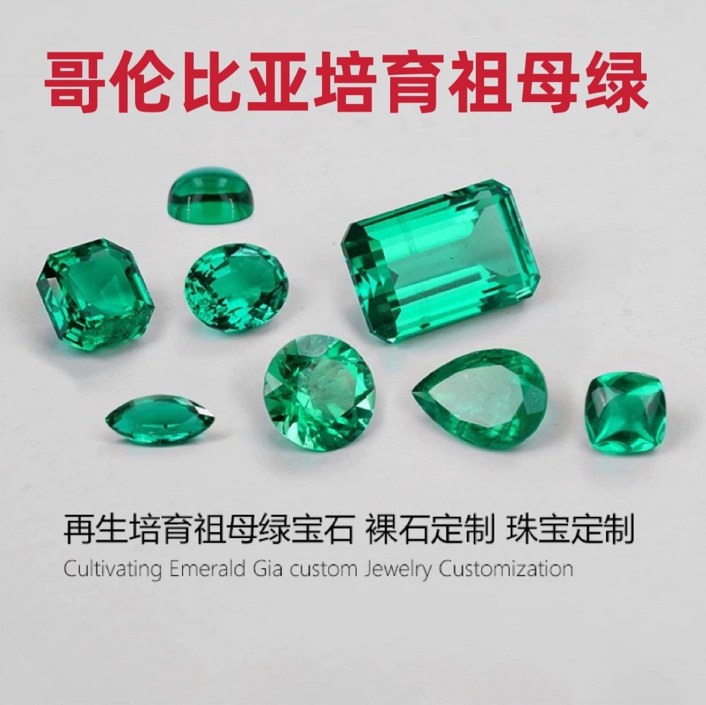 赞比亚培育祖母绿宝石组合 水热法实验室裸石圆形蛋形梨形正方心