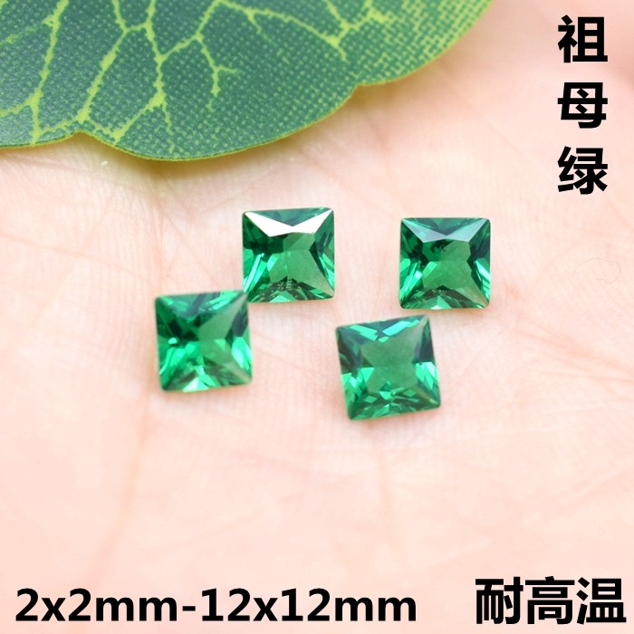 5A级祖母绿裸石正方形绿色戒面主石公主方钻绿宝石戒指耳钉裸钻石