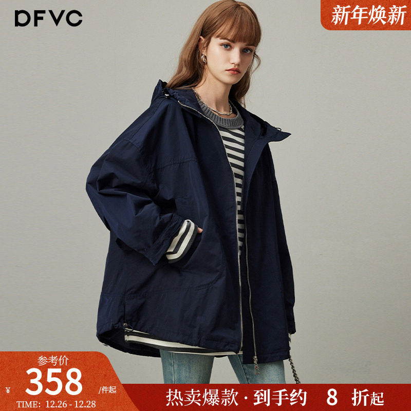 dfvc韩版中长款风衣外套女2025年秋季新款宽松连帽休闲工装上衣潮