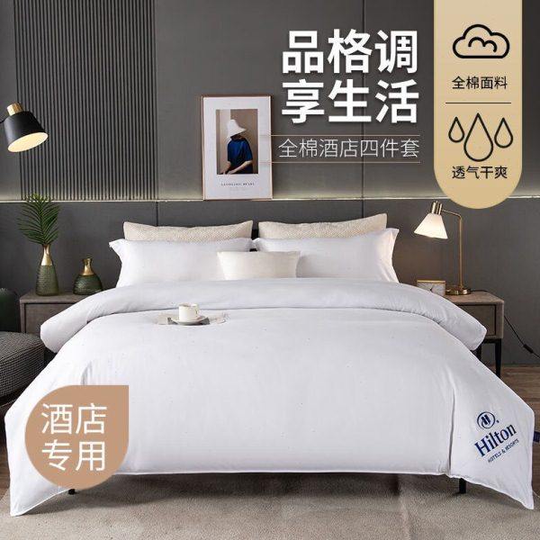 五星级酒店床品四件套宾馆布草纯棉被套全棉民宿白色床单床上用品