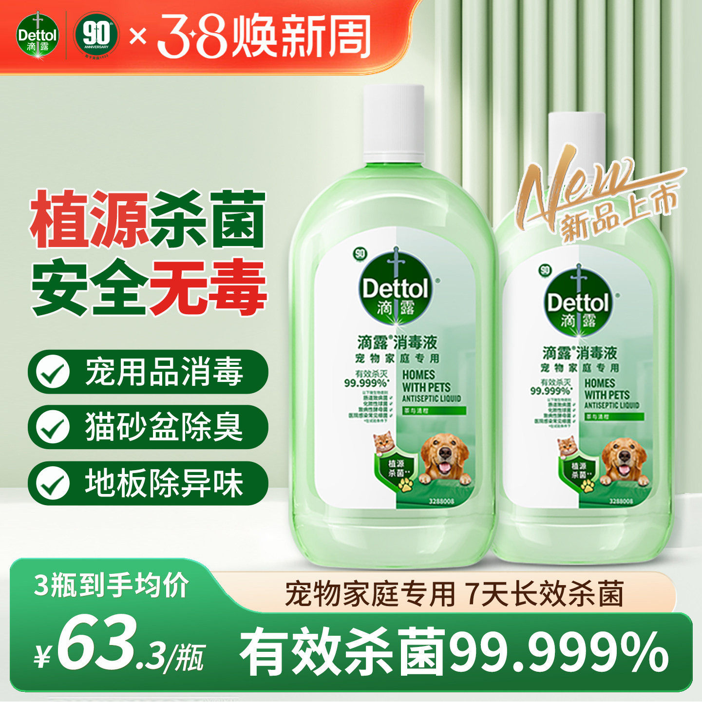 滴露宠物消毒液宠物专用除臭剂杀菌狗窝猫砂盆除尿异味消毒水喷雾