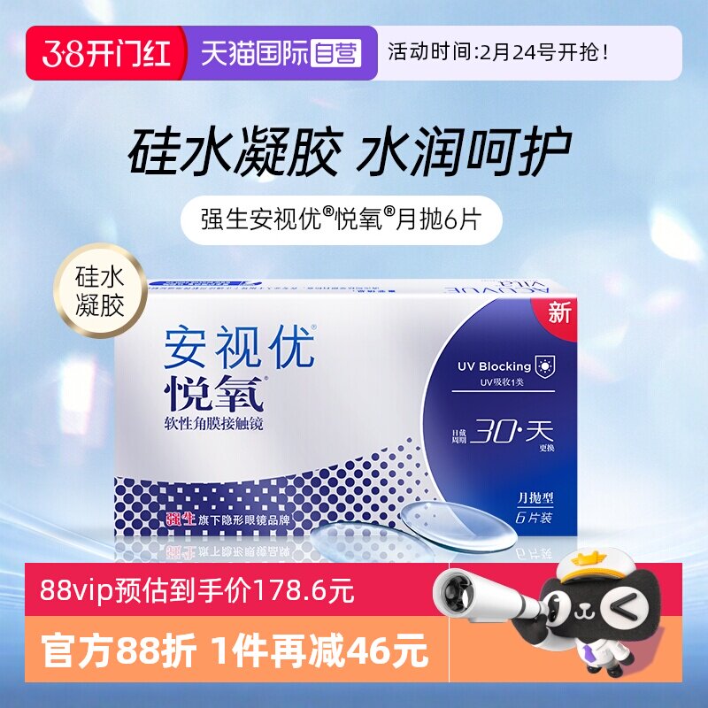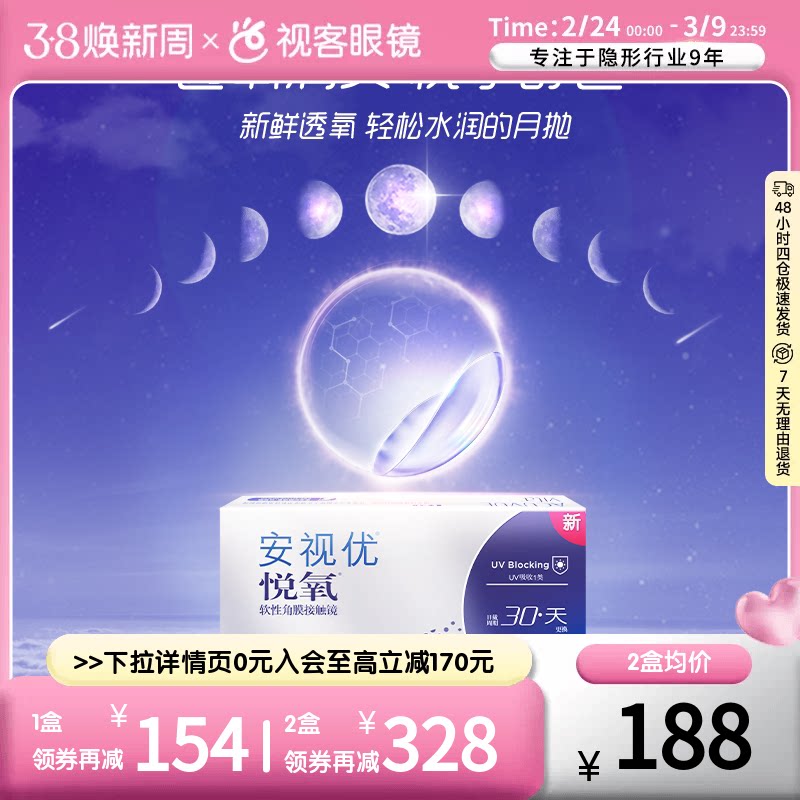 【百亿补贴】强生安视优硅水凝胶悦氧月抛盒3片隐形近视眼镜正品