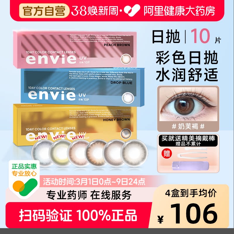 envie美瞳日抛10片装男女小直径彩色自然隐形近视眼镜盒正品官网
