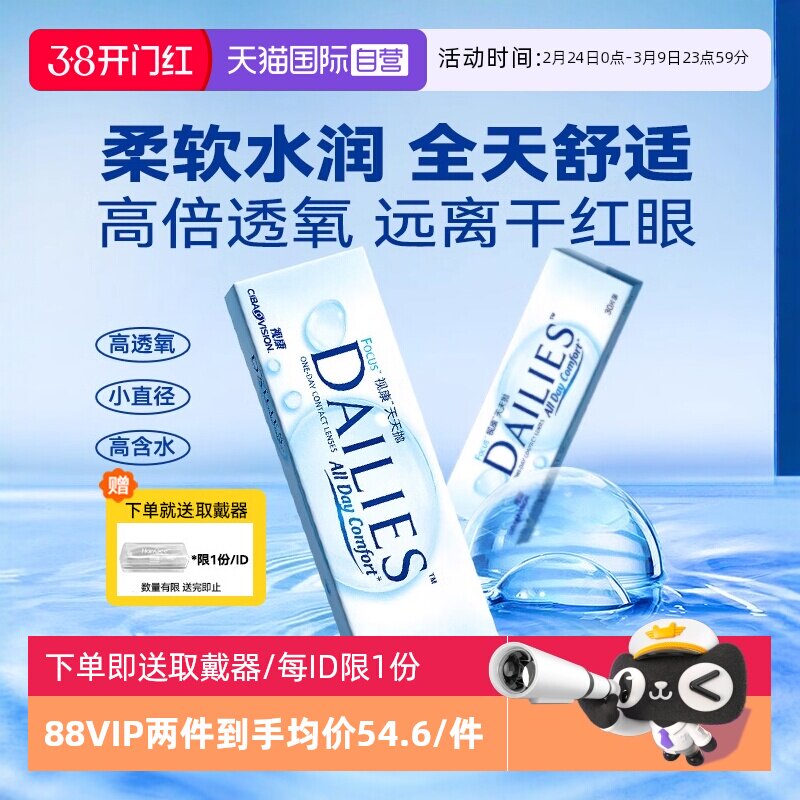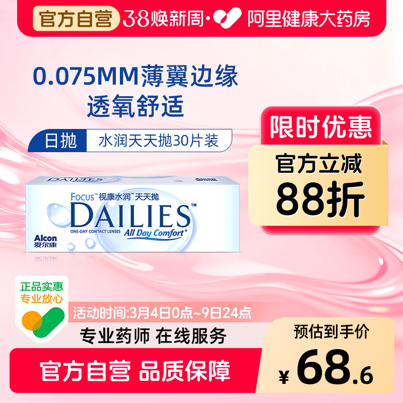 爱尔康隐形近视眼镜盒视康dailies水润天天抛日抛30片旗舰店正品
