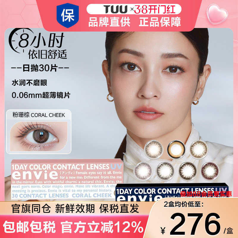 envie美瞳日抛10片棕色紫色近视隐形眼镜盒女大小直径官方旗舰店
