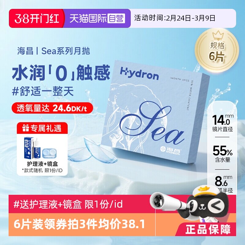 【自营】海昌隐形近视眼镜Sea/优氧月抛盒6片隐型眼境非半年日抛