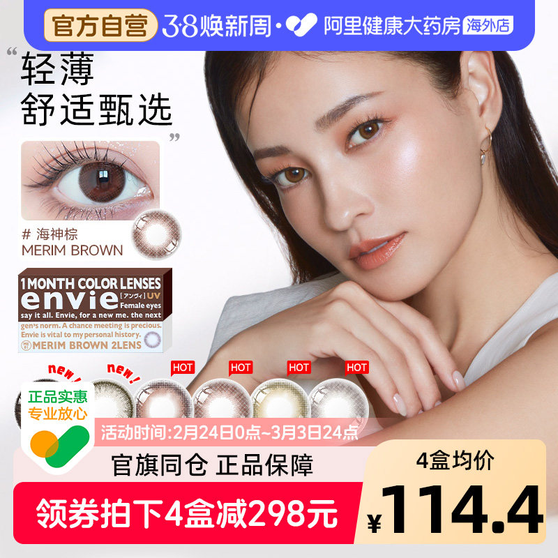 日本envie美瞳月抛2片大小直径彩色隐形近视眼镜盒正品非日抛官网