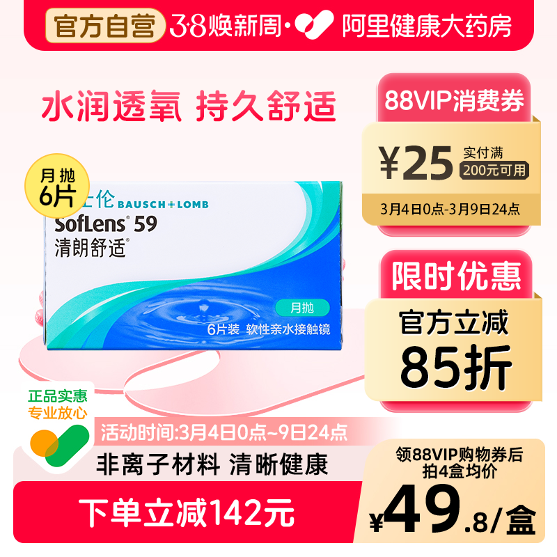 博士伦隐形近视眼镜盒清朗舒适进口月抛6片装眼境旗舰店官网正品