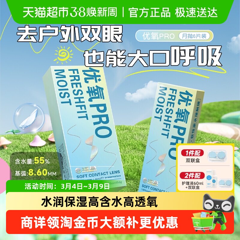 库博光学倍明视倍诺月抛6片装隐形近视眼镜盒水润透氧非日抛TF
