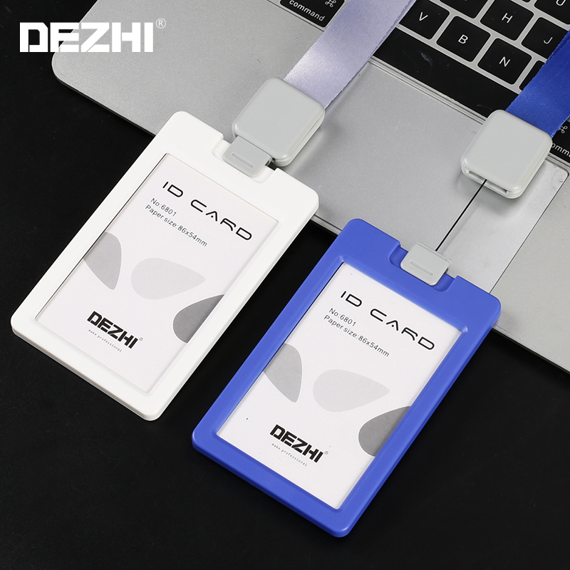T-001V竖双面透明科记工作牌胸卡套员工证件胸牌工作证套门禁卡易拉扣伸缩扣展会证厂牌挂绳定制工作证
