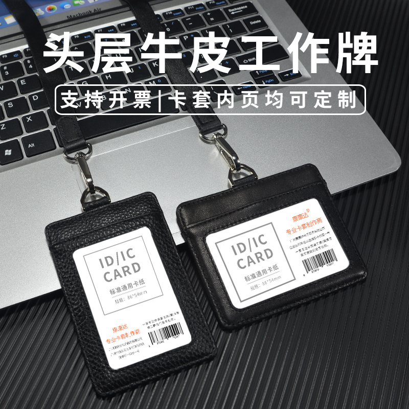 头层真皮工作证件套防干扰门禁卡套定制工作证皮套身份证保卡套公交工作牌胸牌学生卡包校园工牌保护套挂绳