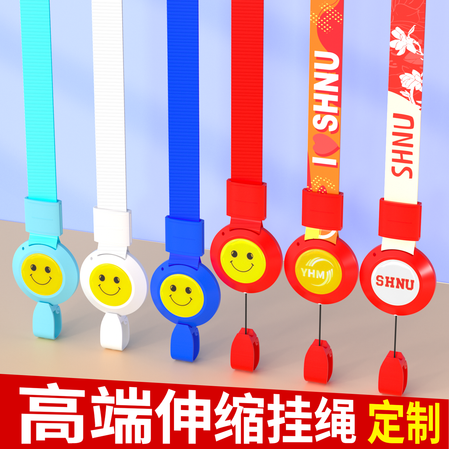 工牌挂绳定制工作证笑脸挂脖绳可伸缩1.5CM胸牌卡套绳带定制logo