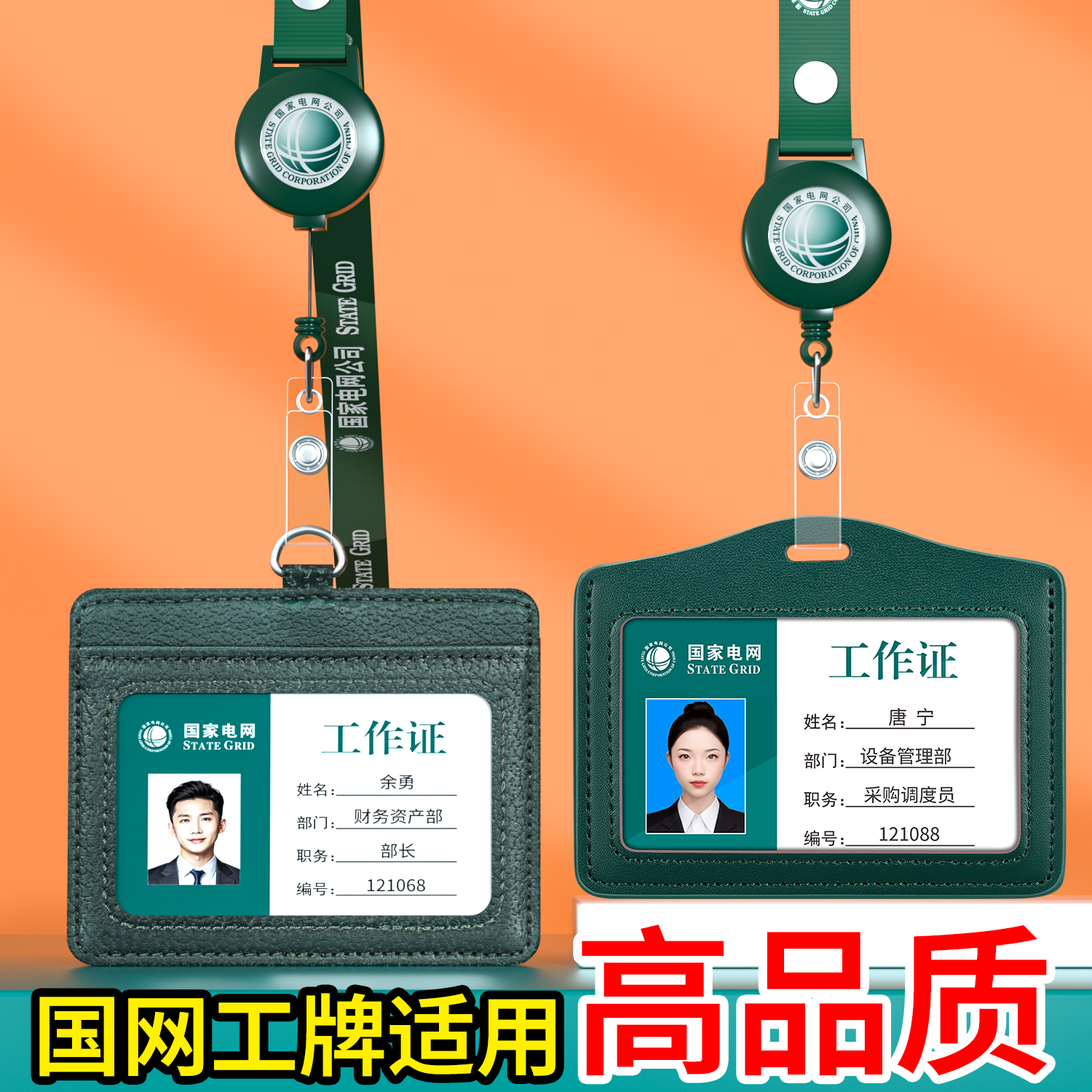 适用国家电网南方电网真皮工牌定制工作证卡套员工胸牌可伸缩挂绳