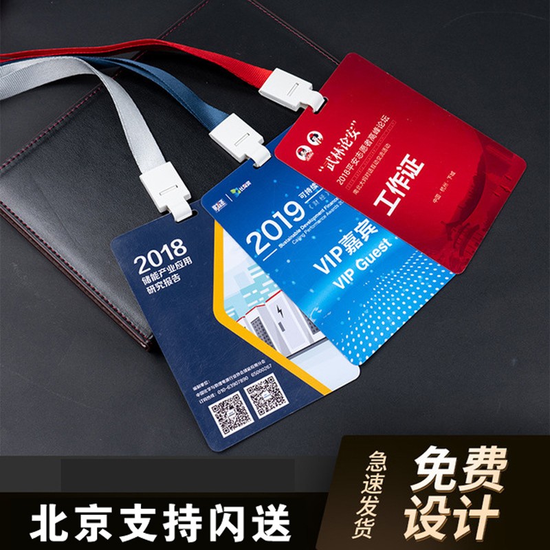 pvc工作证工作牌定制工牌胸卡嘉宾证参会证代表胸牌卡片挂绳定做