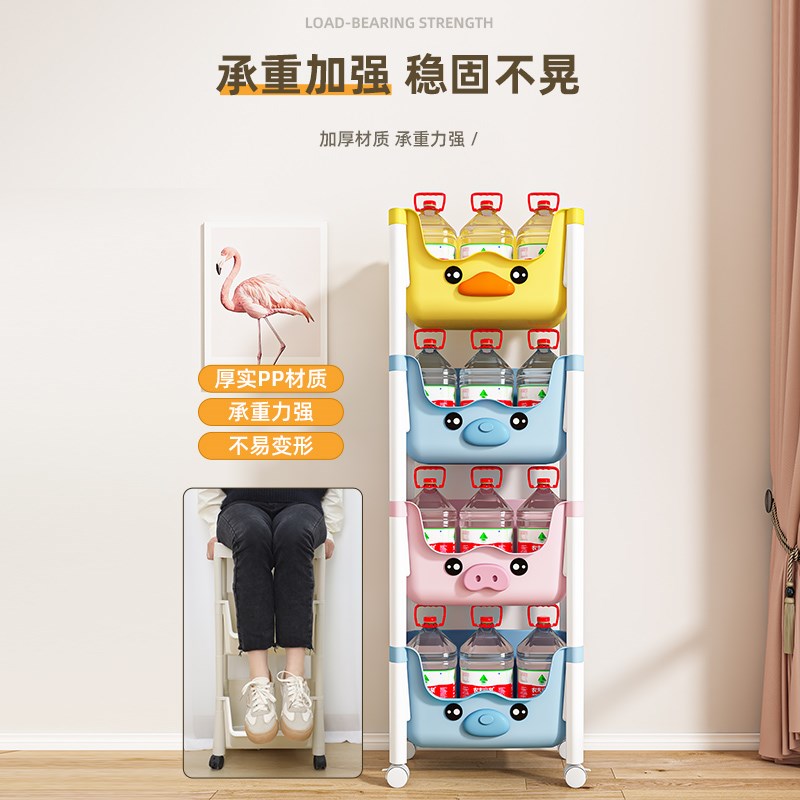 儿童书架落地零食玩具收纳架可移动小推车置物架家用多层组装书柜