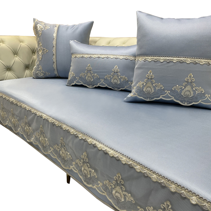 欧式皮沙发垫凉席通用高档防滑夏季蕾丝冰丝布艺客厅贵妃套罩定制