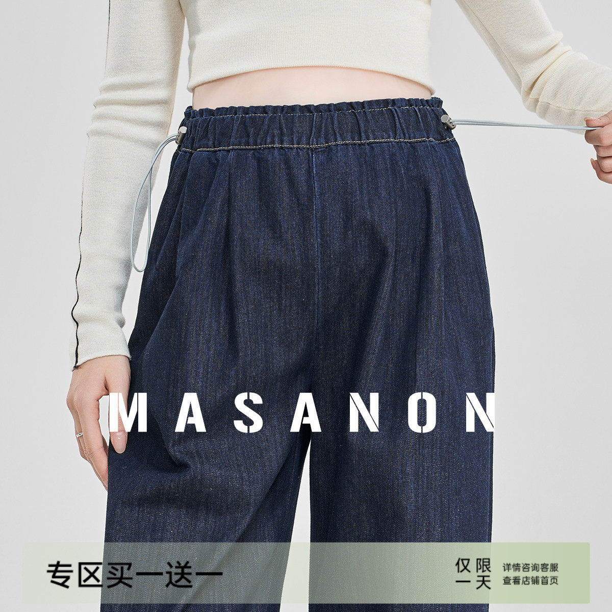 MASANON孕妇背带裤春季外穿小个子牛仔裤不勒肚子刺绣阔腿裤春装