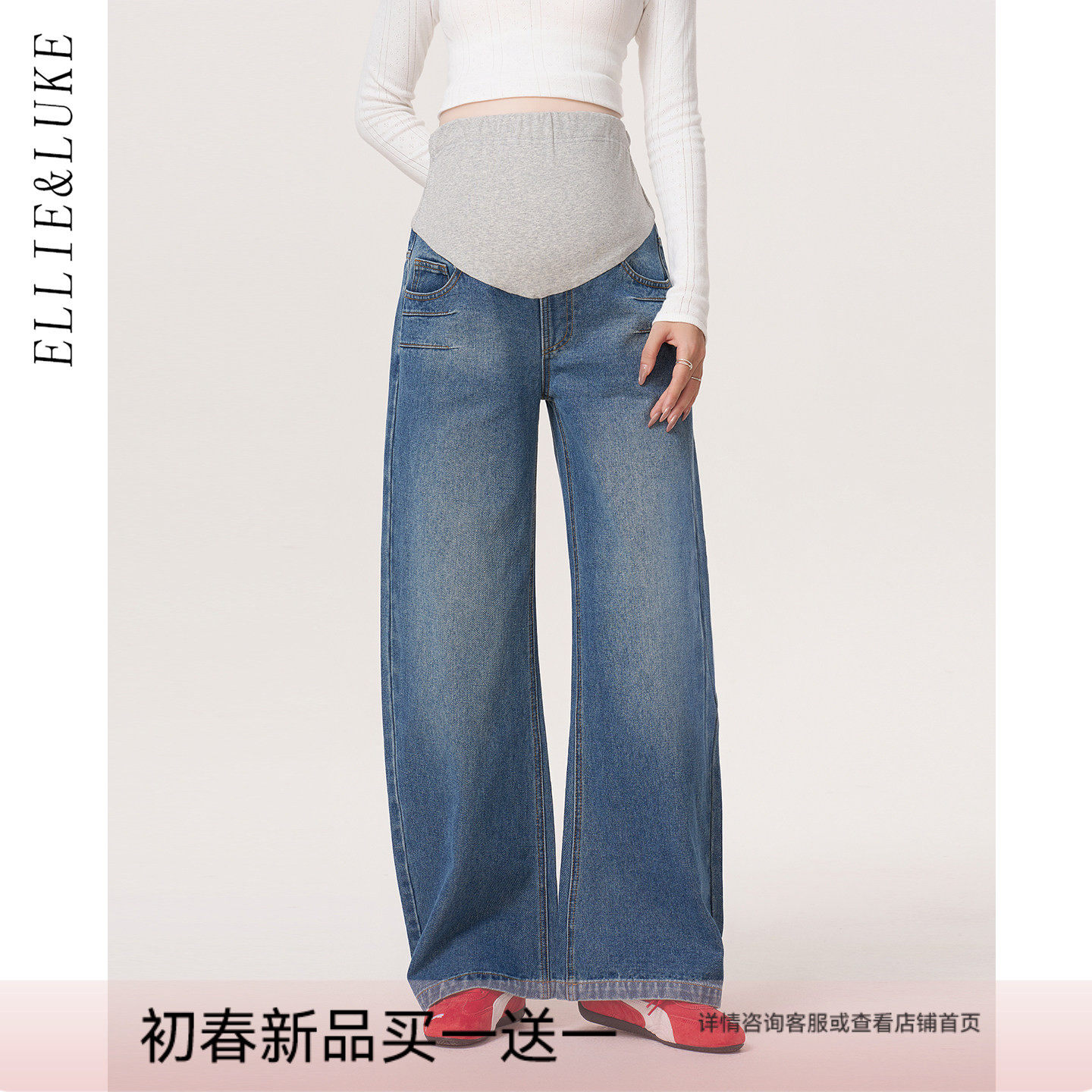 ellieluke孕妇裤春秋外穿小个子牛仔裤无托腹长裤阔腿直筒裤春装