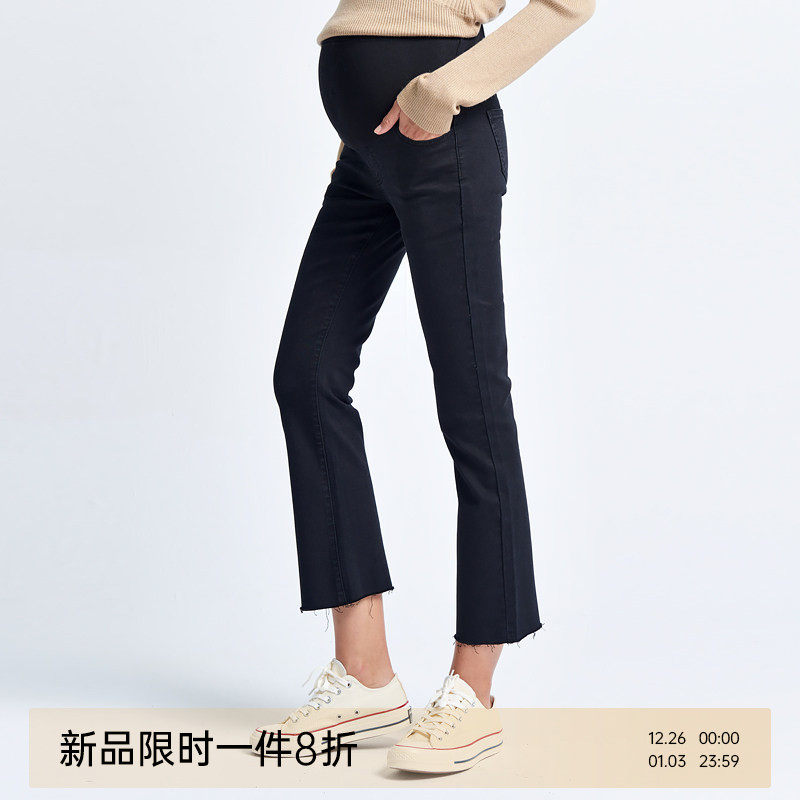 MASANON孕妇牛仔裤春装2026新款黑色烟管裤小个子微喇裤春秋外穿