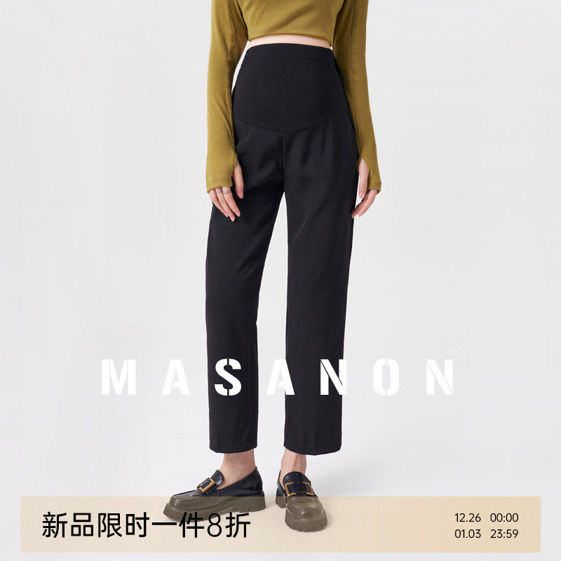 MASANON孕妇裤春秋外穿2026新款职业西装裤黑色烟管小脚裤子春装