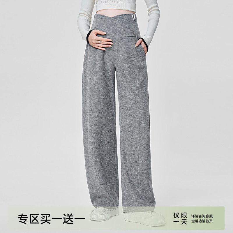 孕妇裤子春秋款2026新款春装低腰直筒阔腿裤休闲运动卫裤春季外穿