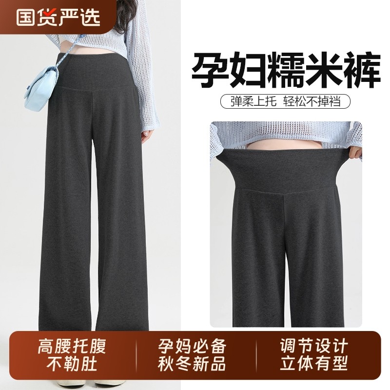 孕妇裤子糯米裤秋冬外穿2025新款阔腿裤百搭春秋无托腹休闲软软裤