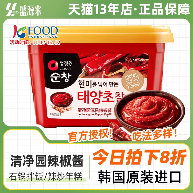 韩国进口清净园淳昌辣椒酱500g韩式辣酱正宗年糕石锅拌饭酱下饭酱