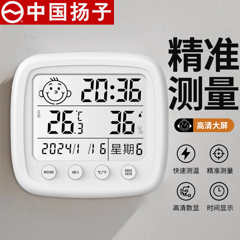 扬子电子温湿度计家用室内高精度数显表带时间日期婴儿房精准室温