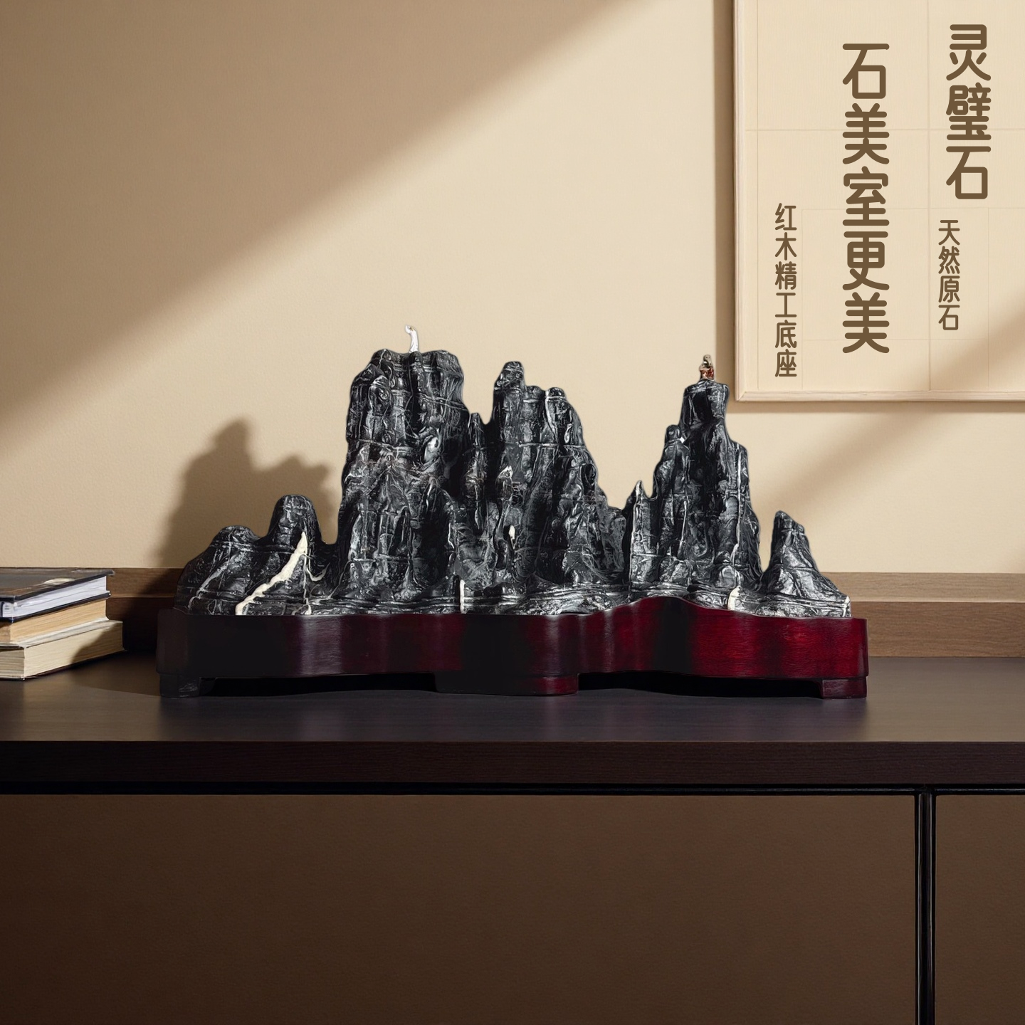 天然灵璧石平远山摆件 八音磬石 客厅玄关案头禅意靠山石空间置景