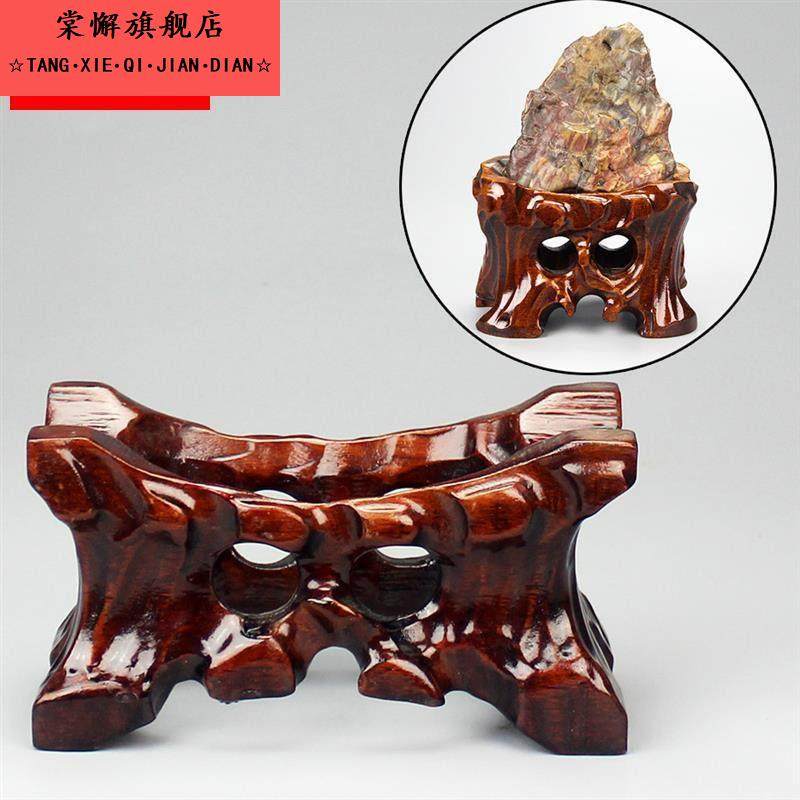 泰山石灵璧石奇石凹槽底座实木质不规则石头摆件挖槽木托 托架子