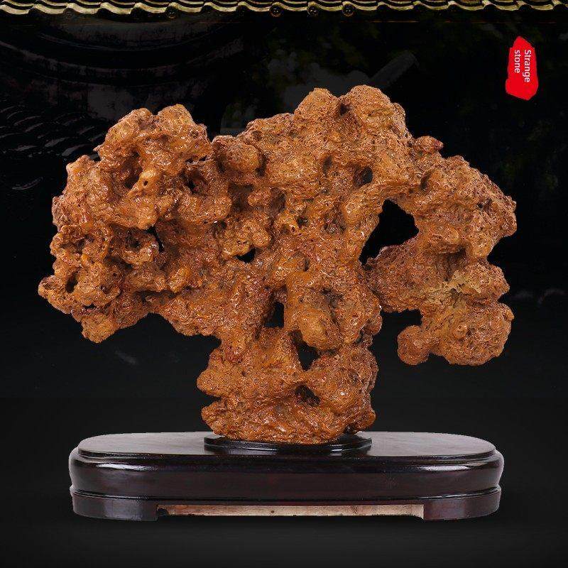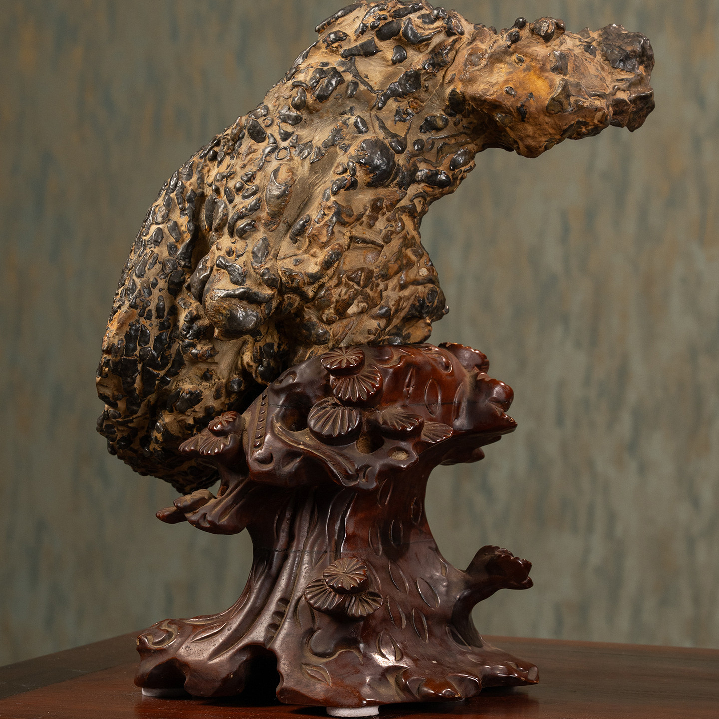 清代 珍珠灵璧石高瞻远瞩赏石(红木座)古董收藏办公室奇石摆件
